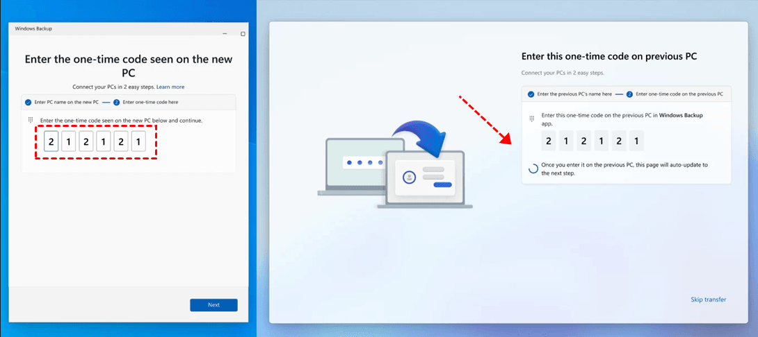 Step 3. Then, enter the one-time code shown on your new PC.