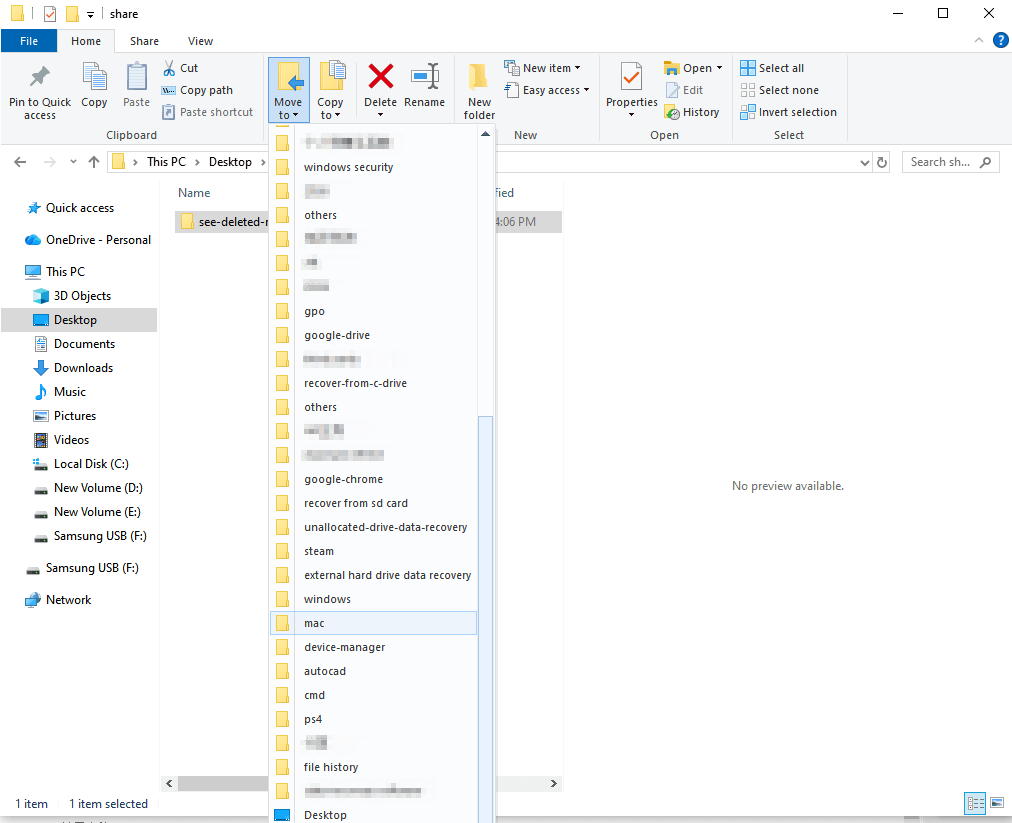Method 3: Transfer Files using Move to Ribbon Menu