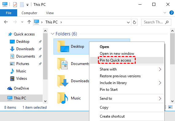 Step 1: Navigate to the folder you want to move files to, right-click it, and select Pin to Quick Access. Do the same for the target folder.