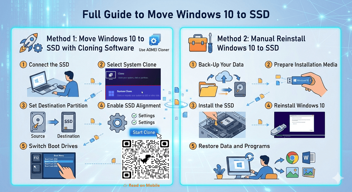 This article provides step-by-step instructions on how to move Windows 10 to SSD, offering options for cloning and non-cloning methods to ensure smooth migration.