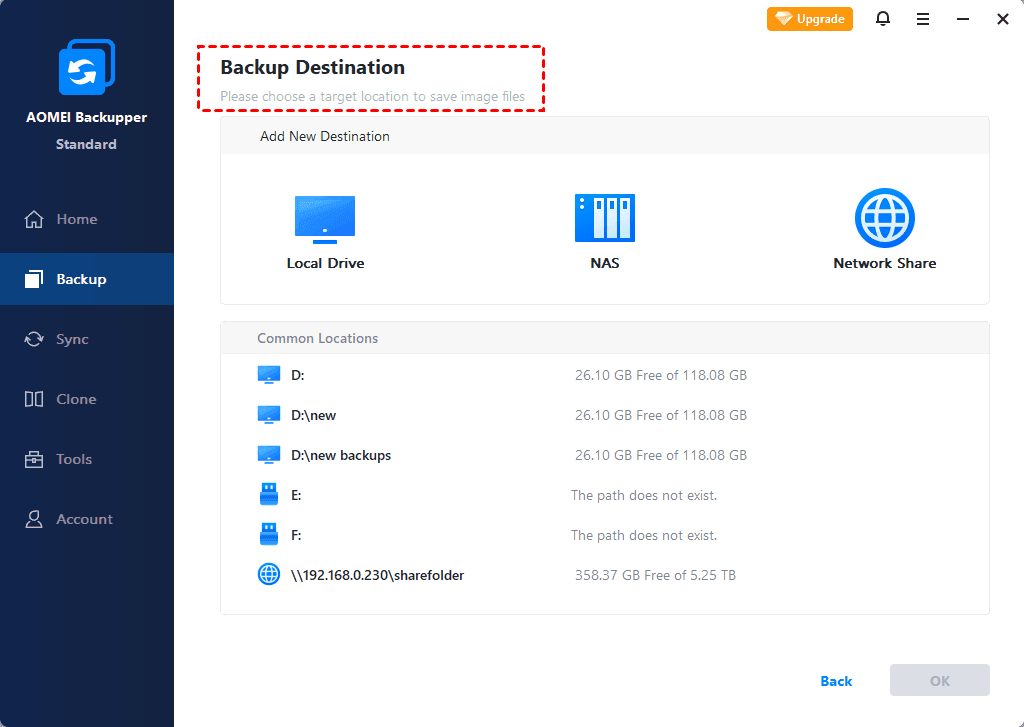 Here I’ll walk you through the exact steps to create a NAS backup using AOMEI Backupper. Two cases will be described below: