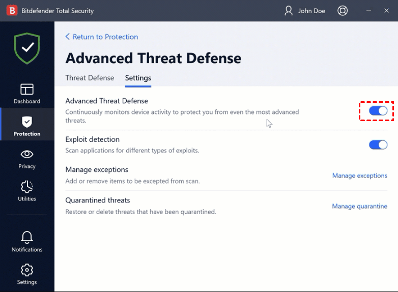 Step 5. Go to the Settings tab and toggle on Advanced Threat Defense.