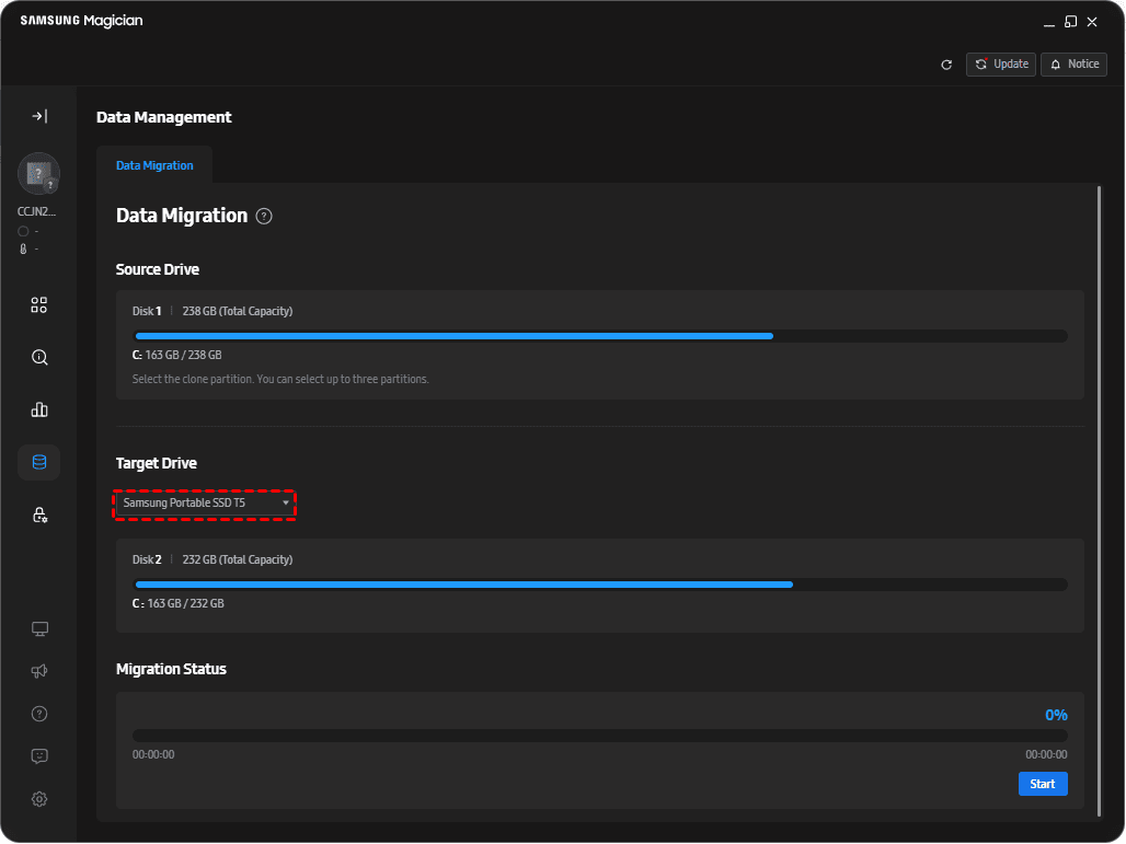 Using Samsung Magician to clone your boot drive to a Samsung SSD is a straightforward process. However, Samsung Magician itself does not have a built-in cloning tool—it integrates with Samsung Data Migration (SDM) software, which is specifically designed for this purpose. Follow the instructions below to clone your boot drive onto a Samsung SSD using SDM: