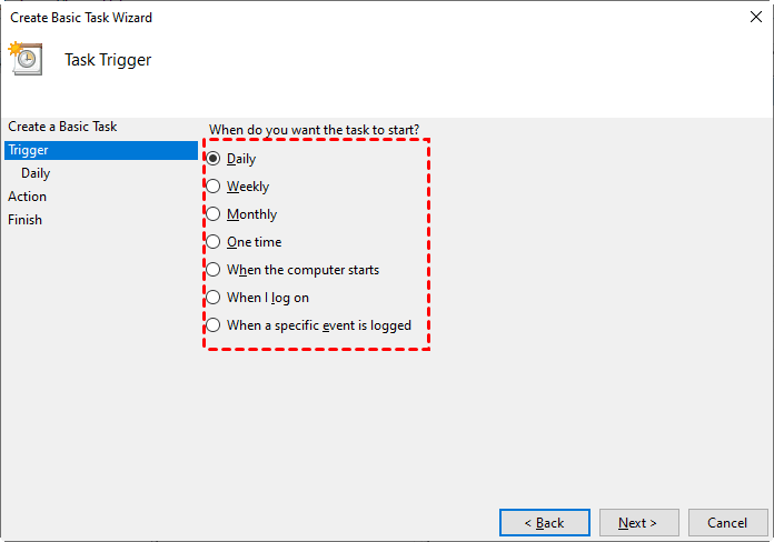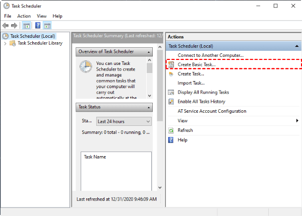 Step 2. Create a scheduled task with Task Scheduler