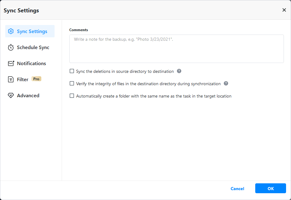 - Multiple Destinations: Sync files to internal disks, external HDDs/SSDs, NAS devices, or cloud storage with ease.