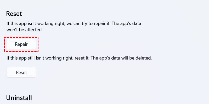 An incomplete installation or missing runtime files can prevent the program from launching. So, you can first try repairing or reinstalling it to restore the missing dependencies.