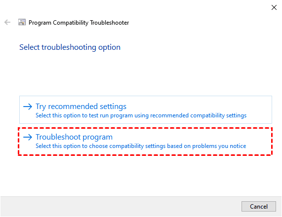 Step 3. Click Run compatibility troubleshooter, and select Troubleshoot program.