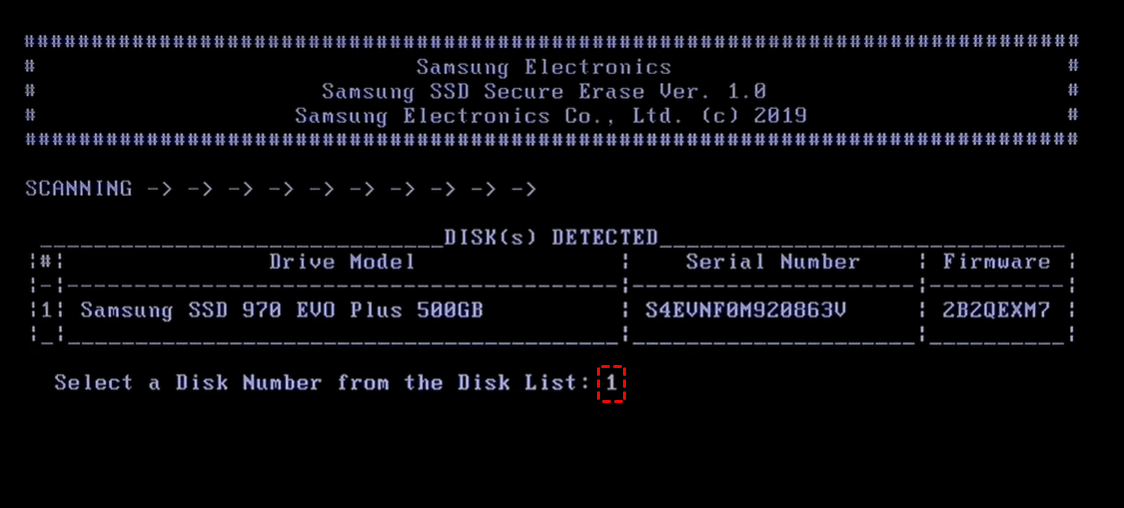 Step 7. Press the number key to select the SSD to be wiped and hit Enter.