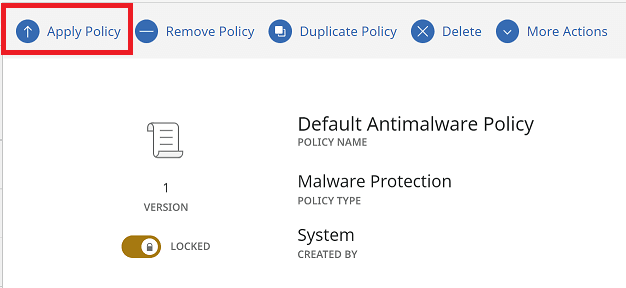 - Go to Policies, and then select a default policy (e.g., Default Antimalware Policy).