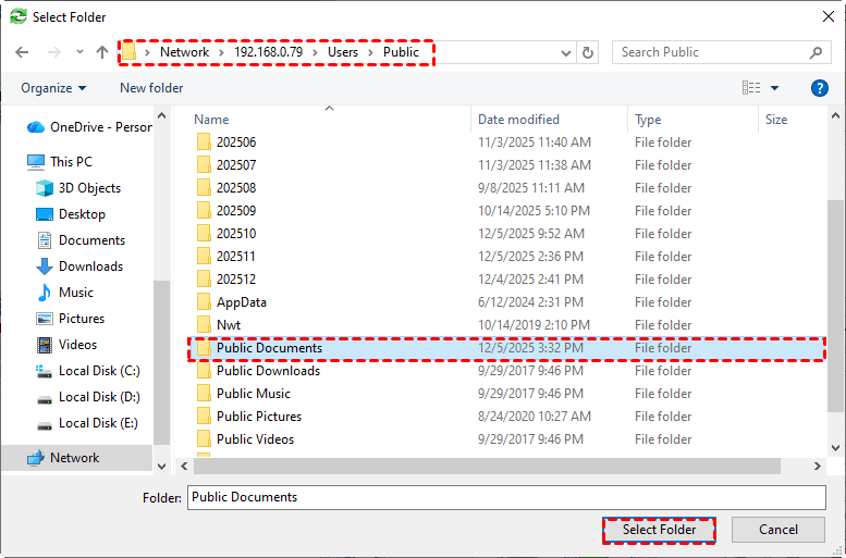 Step 3. You’ll be back on the Select Share/NAS Device window. Check the folder you added and click OK.