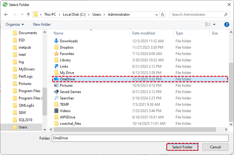 Step 4. Click the destination box and select your OneDrive local folder as the target location.
