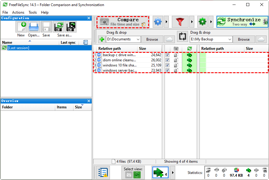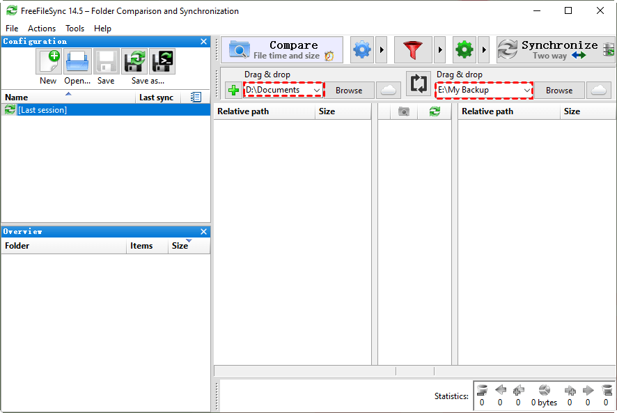 Step 1. Download and install FreeFileSync. Open the program and you’ll see a two-panel interface.