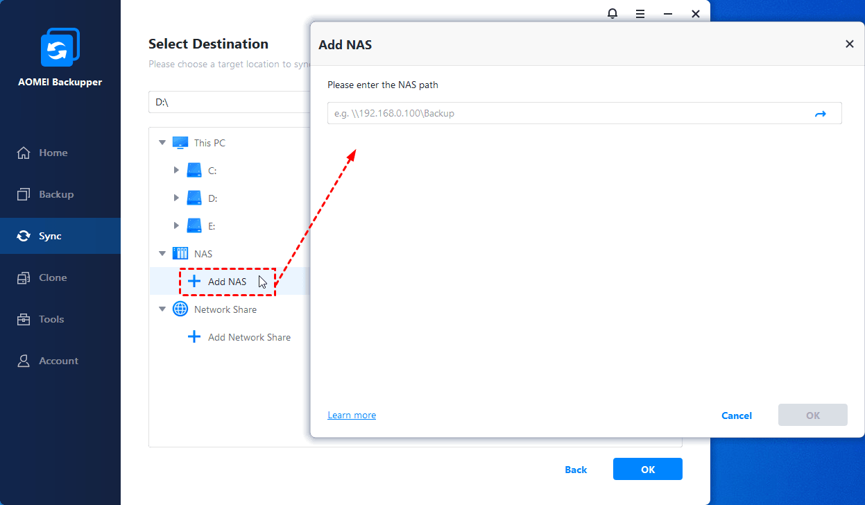 Download AOMEI Backupper and follow the steps below to sync folders between two Synology NAS devices: