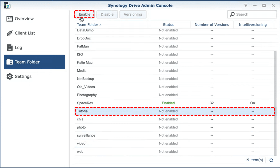 1. Open Synology Drive Admin Console on the remote NAS. Then go to the Team Folder page.