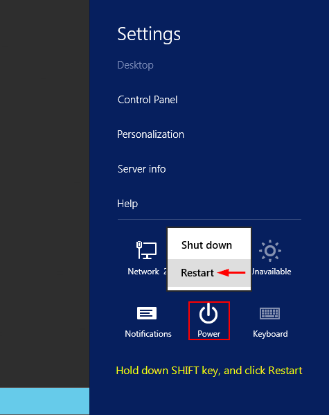 Method 1: Using the Shift + Restart (If Server is Booted)