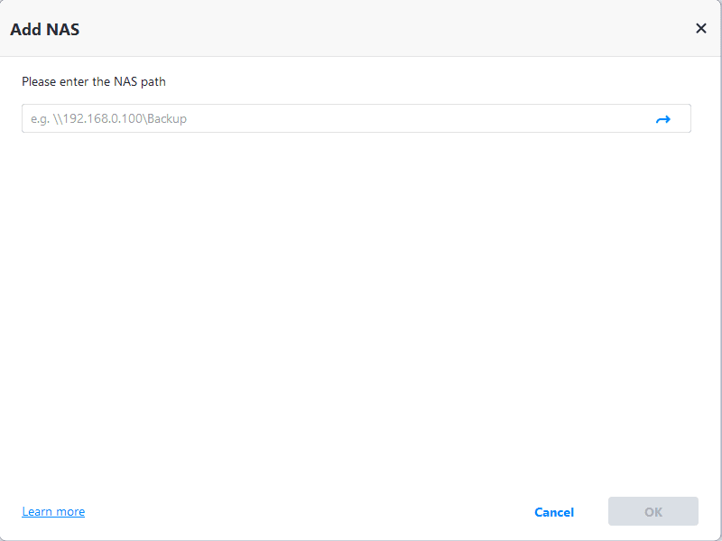 Step 4. On this screen, type your Synology NAS path and click the right arrow. Input username and password if it is required, then click OK.