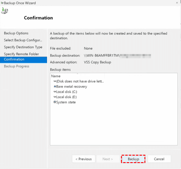👉 Method 2: Backup Windows Server 2019 to NAS Using Windows Server Backup